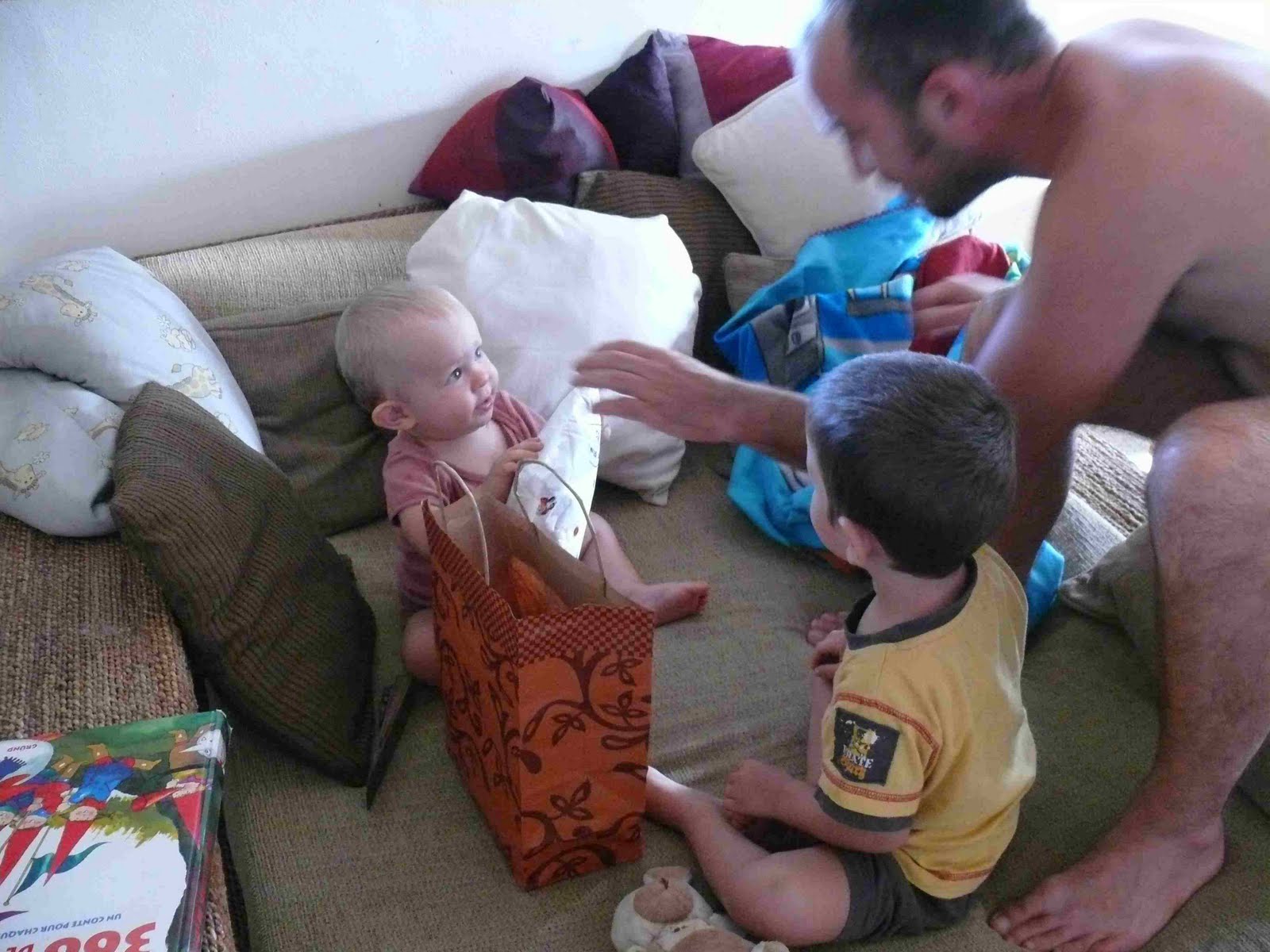 Victor, le fils de Christine et Michel, demi-frère de Sarah (vous suivez ?) et son panier de pâtes de fruits